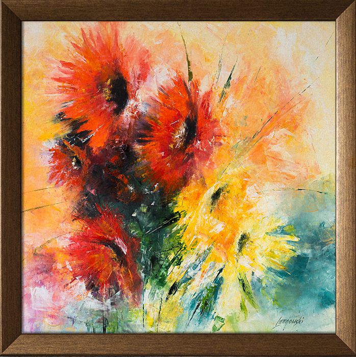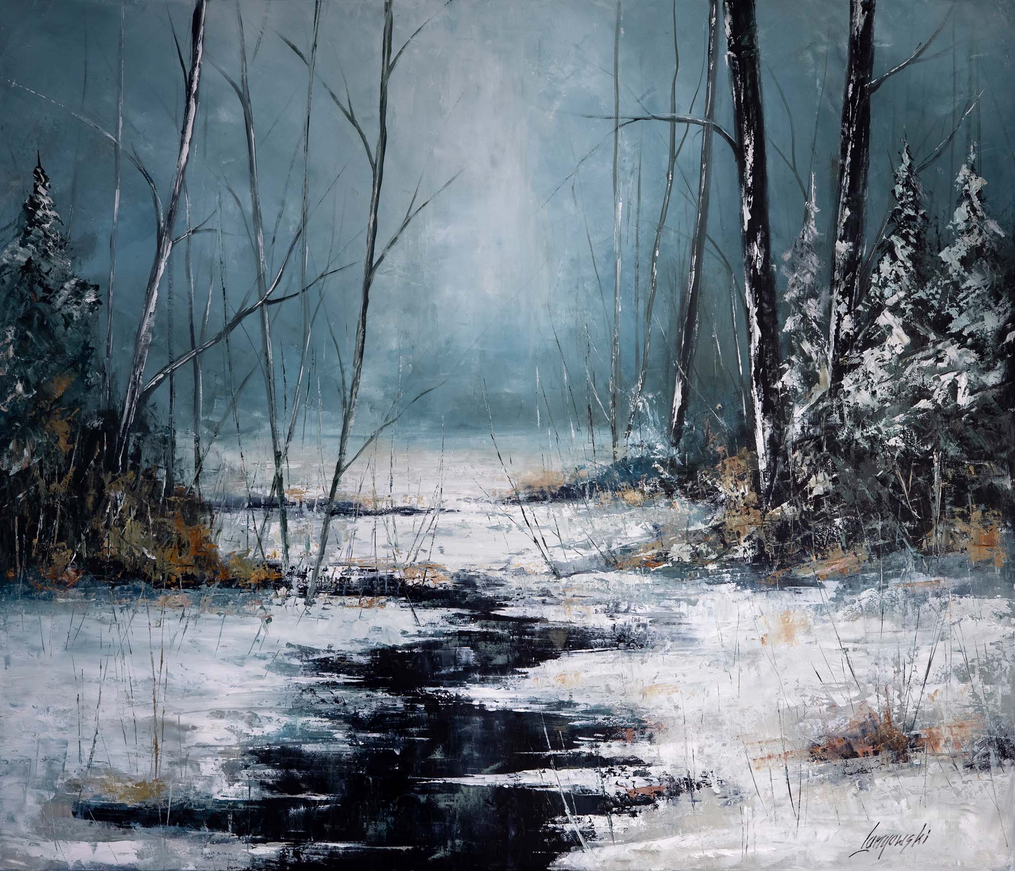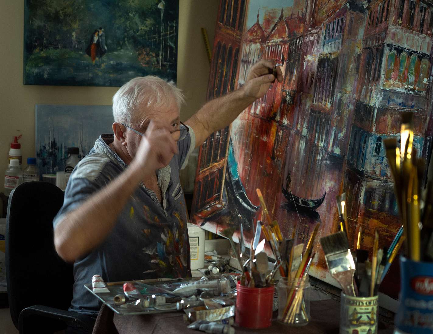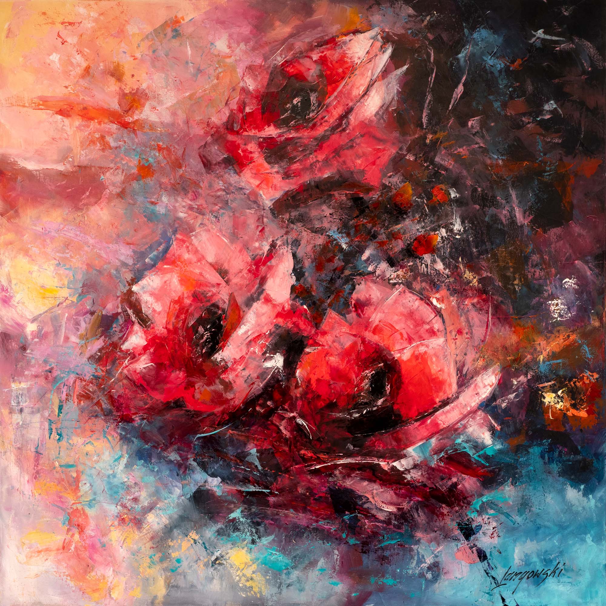 Tworzę głównie obrazy olejne malowane szpachlą, bo właśnie ta technika daje mi największą swobodę i pozwala budować fakturę, którą aż chce się dotknąć. Lepiej jednak patrzeć. Wszystkie prace są mojego autorstwa. Pędzla używam rzadko, właściwie głównie do podpisu. Reszta to już czysta zabawa formą, strukturą i kolorem.